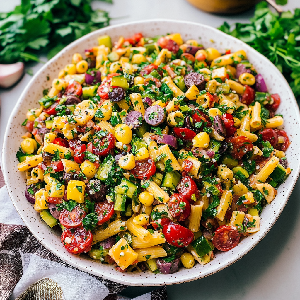 Italian Grinder Pasta Salad is a delicious blend of pasta mixed with fresh vegetables, meats like salami or pepperoni, cheeses, olives, and zesty dressings inspired by Italian grinders or subs. This dish offers a flavorful punch with its combination of savory ingredients and is perfect for picnics or potlucks. The versatility of this salad allows you to customize it according to personal preferences or dietary restrictions while keeping its core essence intact. For more inspiration, check out this corn pasta salad recipe recipe.