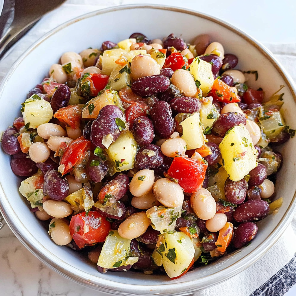 Mediterranean Dense Bean Salad is a refreshing and nutritious dish that combines hearty beans with crisp vegetables and a tangy dressing. Bursting with vibrant colors and flavors, this salad is perfect as a satisfying meal or a delightful side dish for any gathering. It’s easy to prepare and can be customized to suit your taste preferences, making it an excellent choice for healthy eating.
