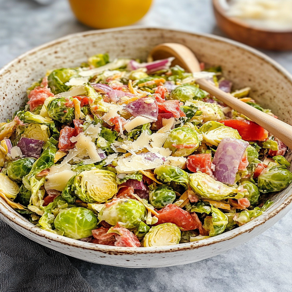 Elevate your meal with this Easy Italian Chopped Brussels Sprouts Salad, a vibrant and nutritious dish perfect for any occasion. Packed with fresh Brussels sprouts, sweet cherry tomatoes, and rich Parmesan cheese, this salad delivers a delightful crunch in every bite. Lightly dressed with tangy lemon juice and smooth Dijon mustard, it offers a zesty flavor profile that enhances your dining experience. Whether served as a side or enjoyed as a main dish, it’s quick to prepare—making it ideal for busy weeknights or casual gatherings. Fresh, wholesome ingredients combine seamlessly to create a colorful salad that not only pleases the palate but also supports your healthy eating goals.