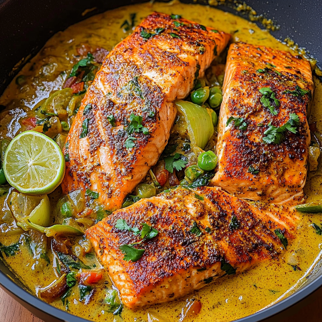 Caribbean Coconut Curry Salmon is a vibrant and flavorful dish that perfectly captures the essence of tropical cuisine. With its rich coconut milk base infused with aromatic spices, this recipe not only tantalizes your taste buds but also brings a splash of color to your dinner table. In just under 30 minutes, you can whip up a meal that is both satisfying and nutritious. Salmon, known for its health benefits, pairs beautifully with the creamy curry sauce, making it an ideal choice for a quick weeknight dinner or a special occasion. coconut chicken recipe The combination of sweet and savory flavors in this dish ensures it’s a hit with everyone from family to friends. Plus, it’s easy to customize according to your preferences, whether you prefer it mild or spicy. So grab your apron and get ready to dive into this delightful culinary adventure; you won’t be disappointed!