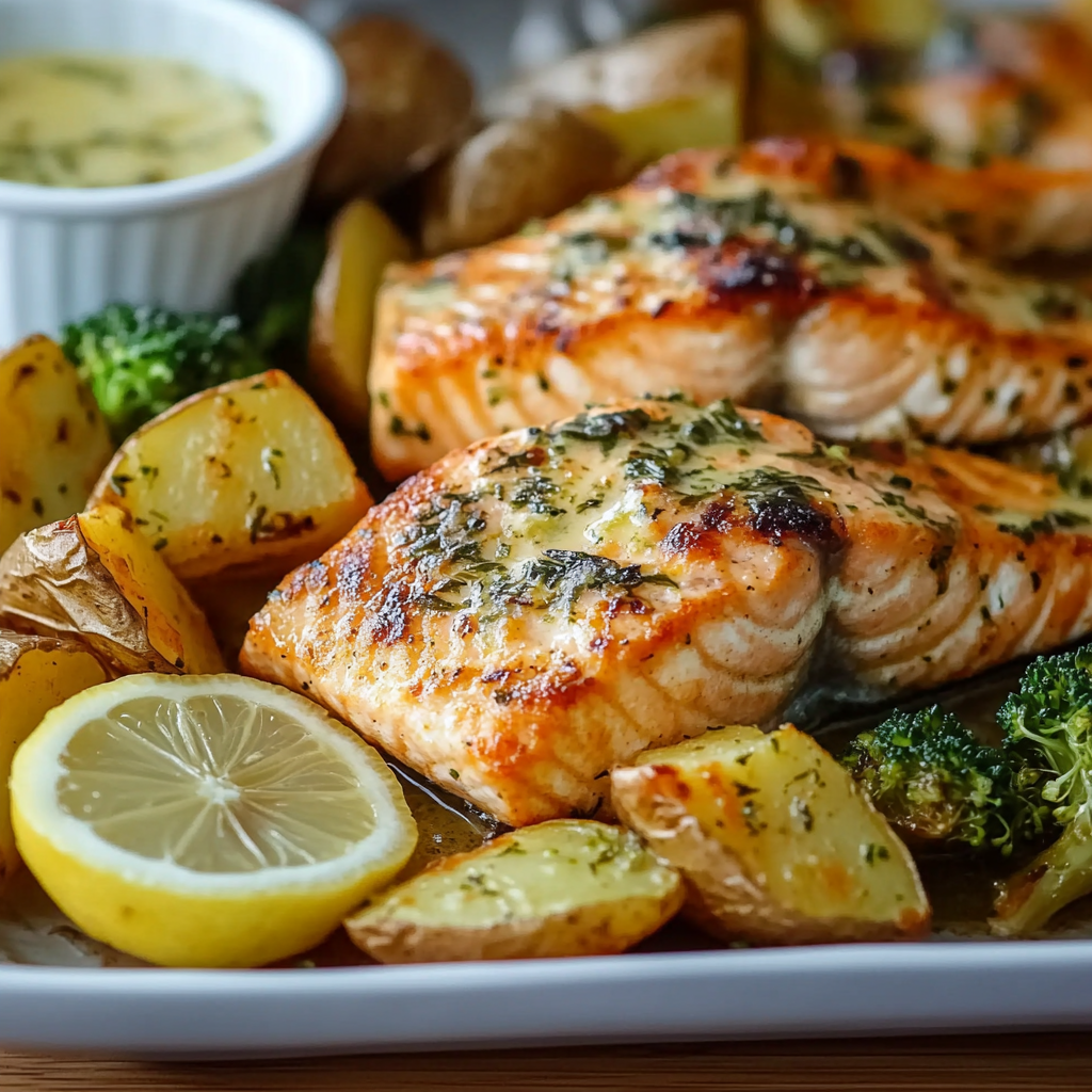 - Suggestions for Lemon Butter Salmon with Crispy Potatoes and Broccoli recipe: